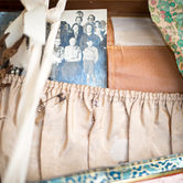 The imagined biscuit tin from which this narrative sense of belonging tumbles is wrapped in a wedding dress and stored in a suitcase. The work includes an accompanying booklet containing photographs, word-pictures and recorded reminiscences.